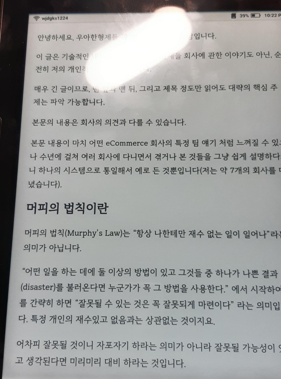 리디바탕을 적용한 리디북스 페이퍼 프로의 모습이다. 물리키도 작동된다.하하.
