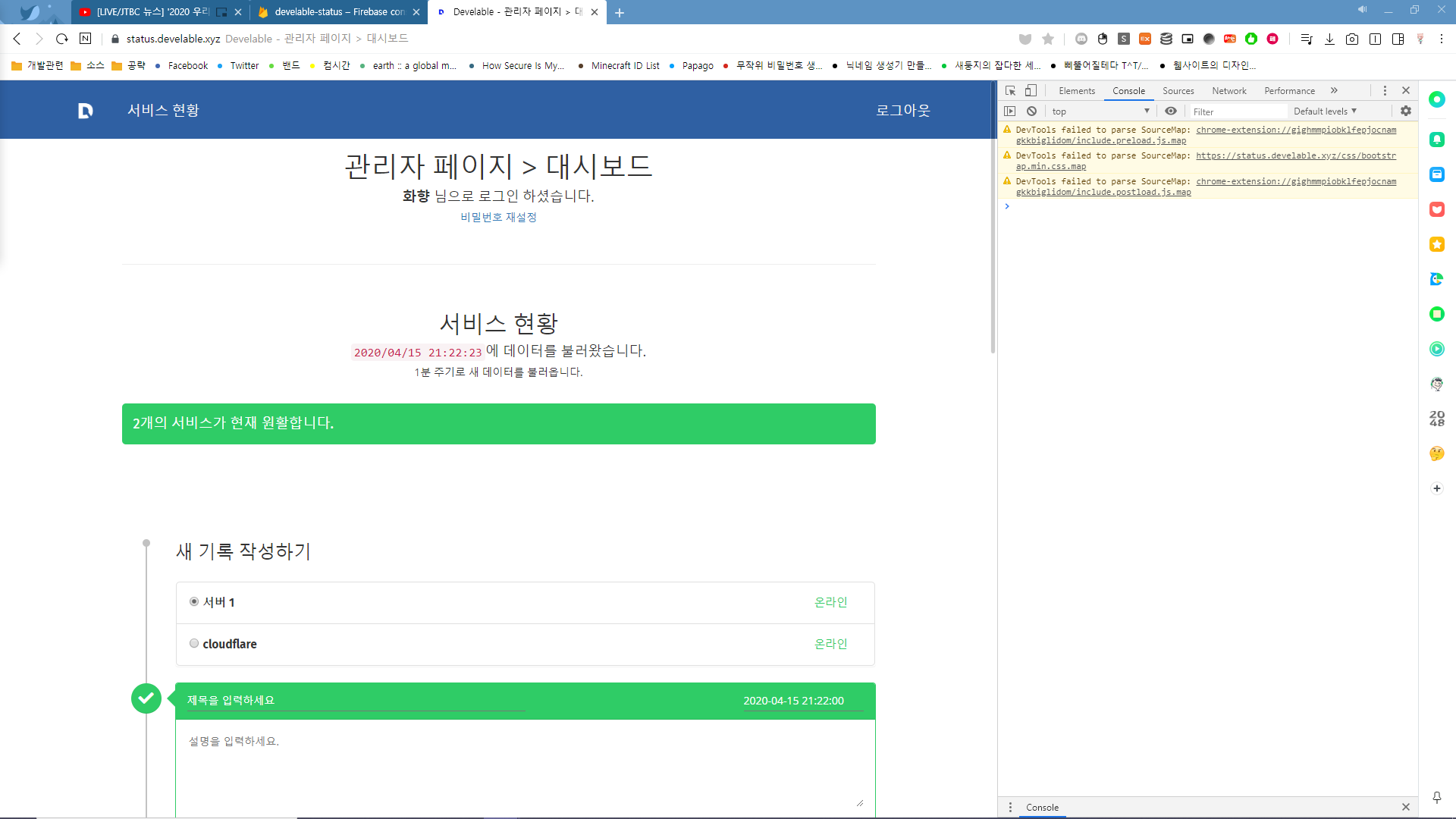 아마 1개월정도는 안쓸 거 같은데, 그래도 보고 싶은 분들은 이쪽 사이트로 접속하면 보실 수 있습니다 : status.develable.xyz